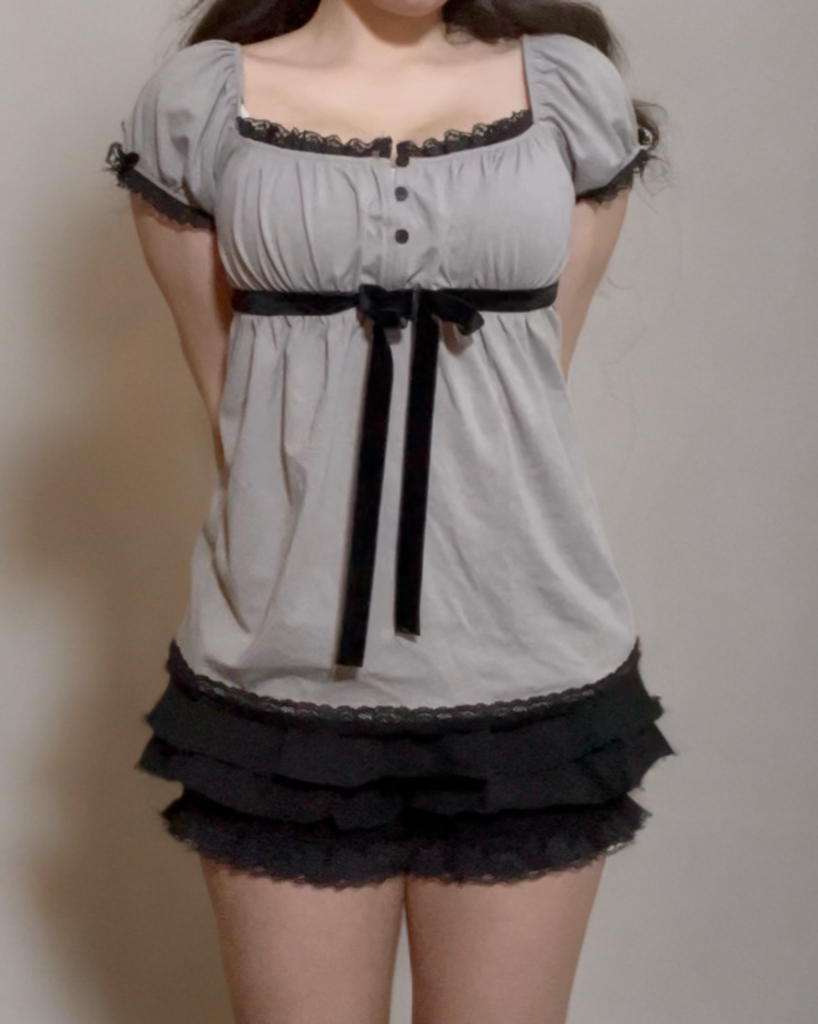 ˚₊‧꒰ა the babydolly top is made with a 100% soft and breathable cotton body, lace trim, and a elastic velvet waist band.